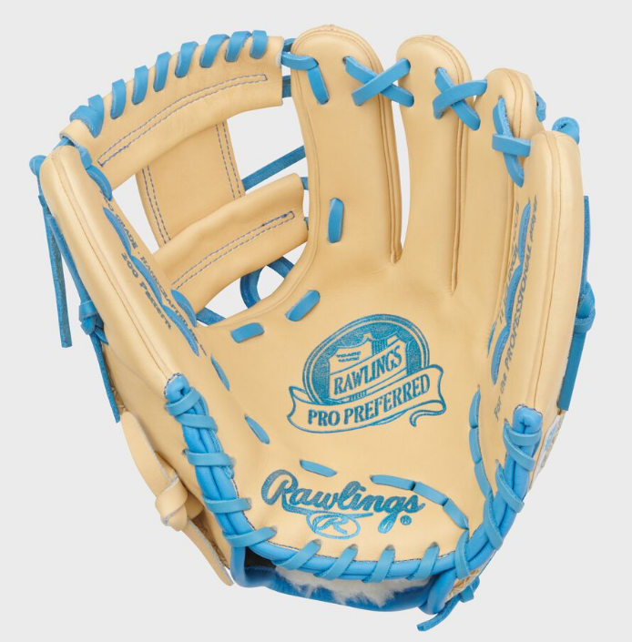 Turn heads and turn two with the Rawlings Pro Preferred 11.5-Inch Infield Glove, crafted for elite performance and bold style. Featuring a sharp Camel and Columbia Blue colorway, this glove is built for infielders who want their glove to work hard and look even better.
