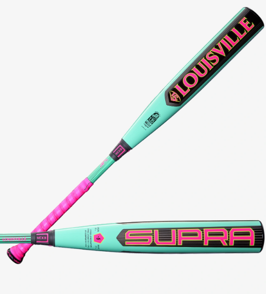 Rev your swing into high gear with the 2026 Louisville Slugger Supra™ (-10), a balanced USSSA baseball bat with a high-performing, soft-feeling barrel. Supra’s easy-swinging design features a barrel made with updated composite material, and its massive 2 ¾” profile delivers an expanded sweet spot for more consistent hits. Supra plays loud with its Neon Mint & Pink design, and its APX Composite delivers maximum performance right away – helping travel ball’s youngest players put their stamp on the game.